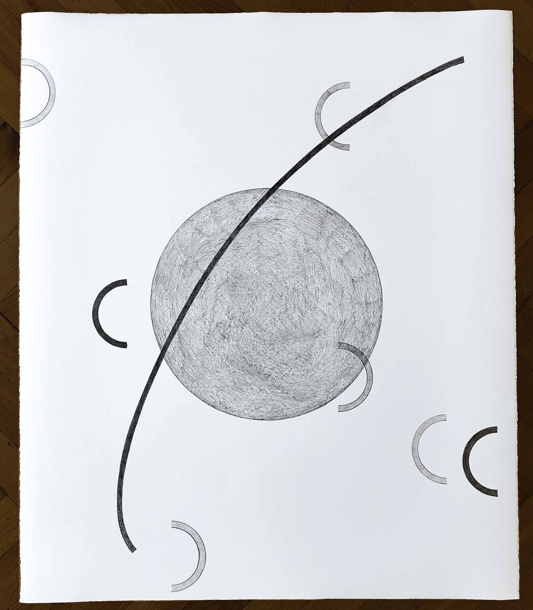 Recherchen über die kognitive Landkarte der Bienen, ihren Sonnenkompass und Chronometer sowie ihre Kommunikation erkundeter Futterplätze mittels Tanz und Abstimmung darüber haben mich zu den abstrahierten Zeichnungen geführt, die an eine Arbeit zum Bienengehirn anknüpfen: Bee Brain.
